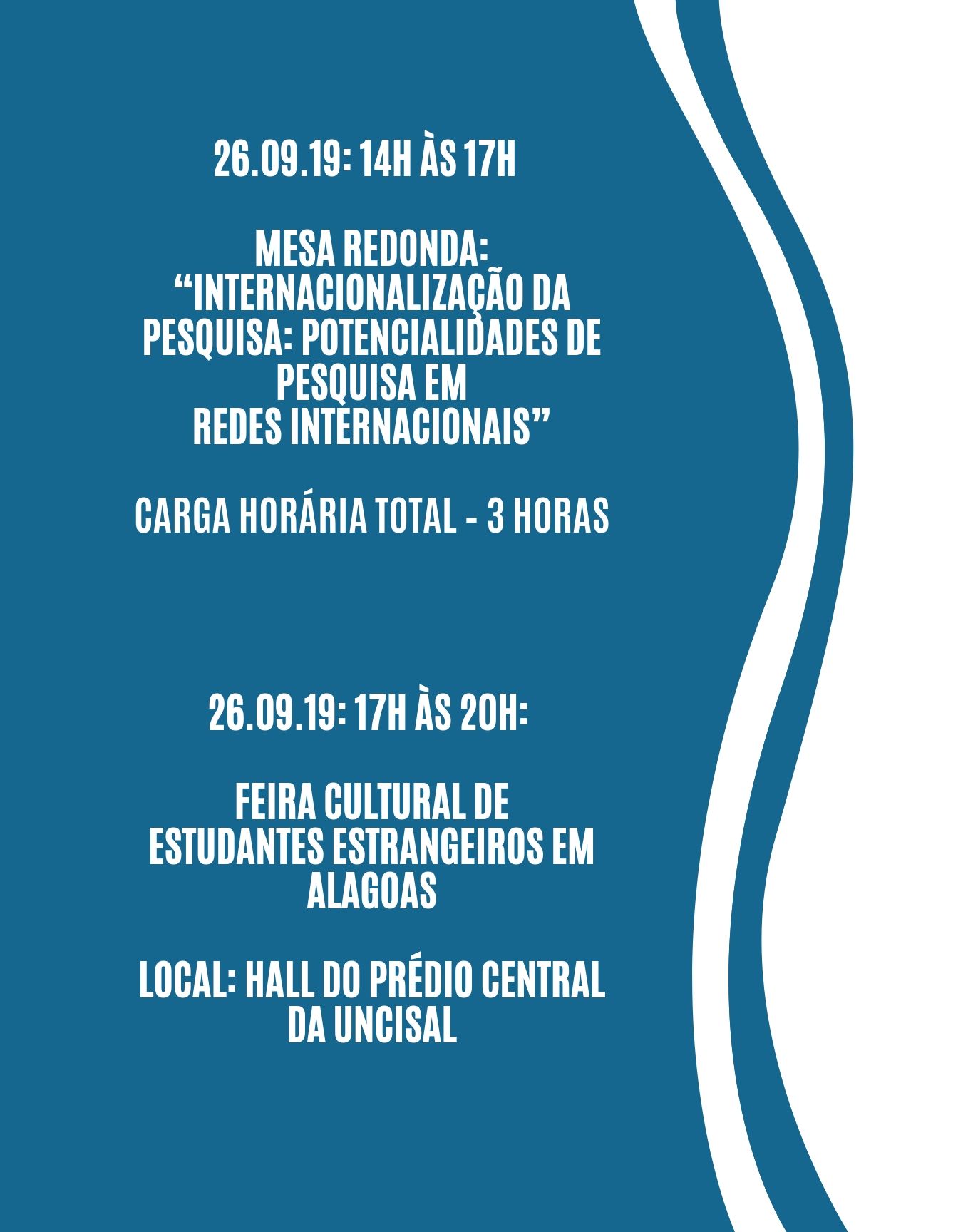 I Jornada de Internacionalização em Alagoas acontecerá no período de 24 a 26 de setembro de 2019, em Maceió,no Prédio Sede da Universidade Estadual de Ciências da Saúde de Alagoas (UNCISAL).
