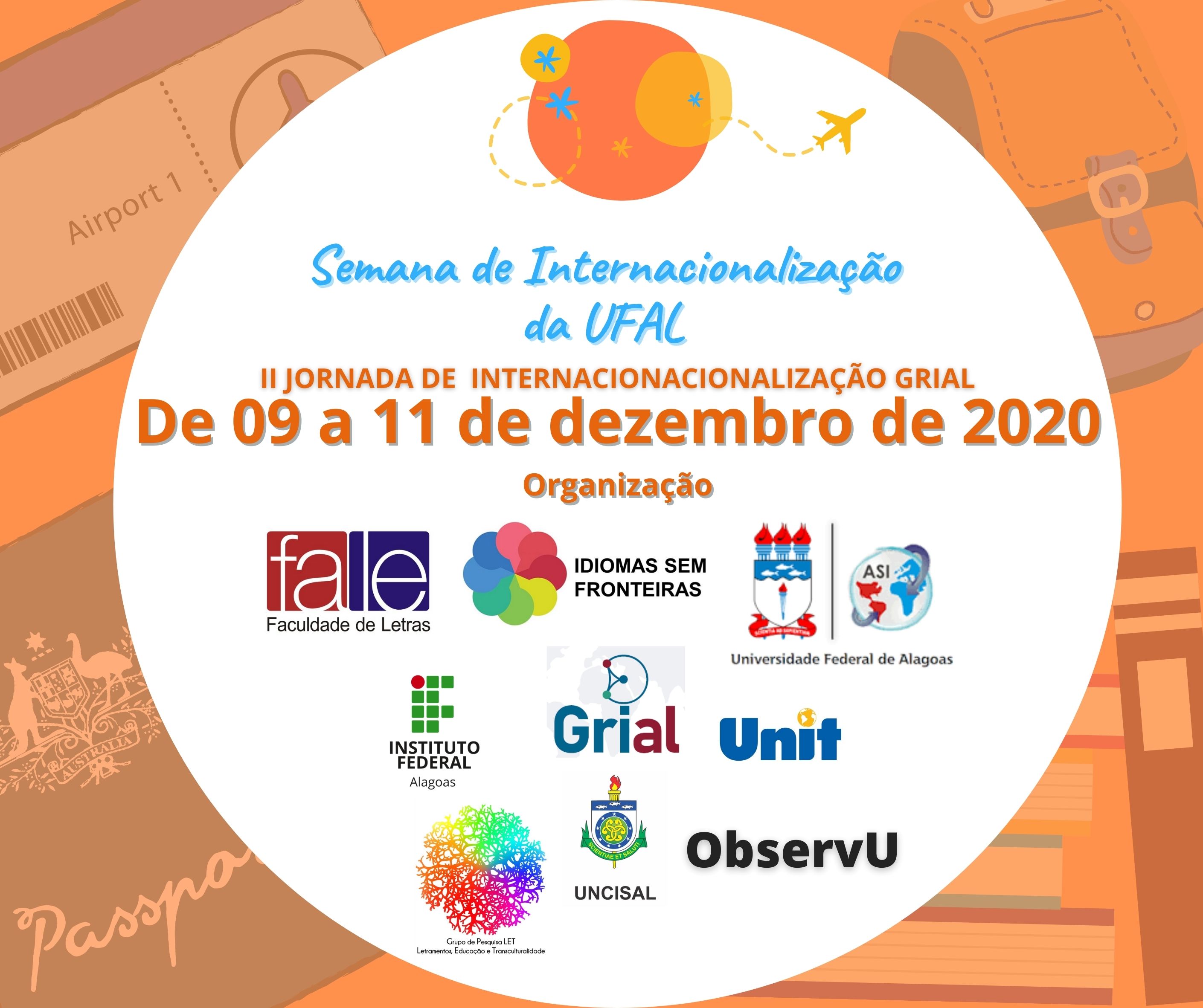 No período de 09 a 11 de dezembro de 2020, a Universidade Federal de Alagoas organiza a primeira semana de internacionalização da UFAL.